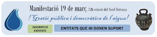 Amb el suport de: ASiA- Associació Salut i Agroecologia, AVV CA N’Anglada, AVV La Maurina, AVV. Sant Pere Nord, Associació de Veïns del Barri Segle XX, Aliança Contra la Pobresa Energètica (APE Terrassa), Casal de la Dona, CCOO Vallès Occidental- Catalunya Central, Comunitat Educativa, Consell d’Entitats d’Acció Ciutadana de Terrassa, CUP de Terrassa, Ecologistes en Acció, Enginyeria sense Fronteres, ERC de Terrassa, Grup de Defensa del Ter, Grup per la Protecció dels Espais Naturals de Terrassa, iai@flautes-TRS, ICV-Terrassa, MES de Terrassa, PAH Terrassa, Parlament Ciutadà de Terrassa, PEJU Cat, PSC de Terrassa, PSUC-Viu de Terrassa, Terrassa en Comú i Xarxa per la Soberania Energètica i Xarxa per una Nova Cultura de l’Aigua,